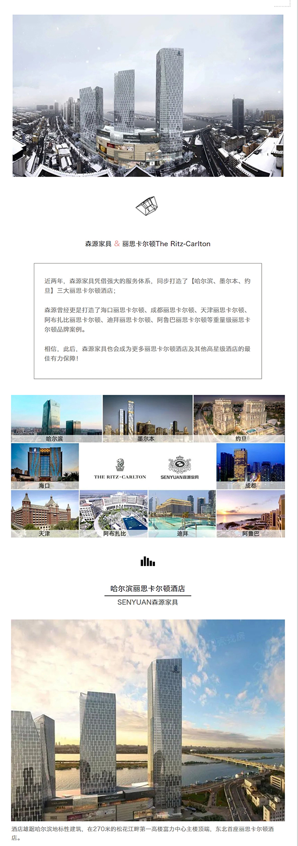 近兩年,森源家具憑借強(qiáng)大的服務(wù)體系,同步打造了【哈爾濱、墨爾本、約旦】三大麗思卡爾頓酒店;