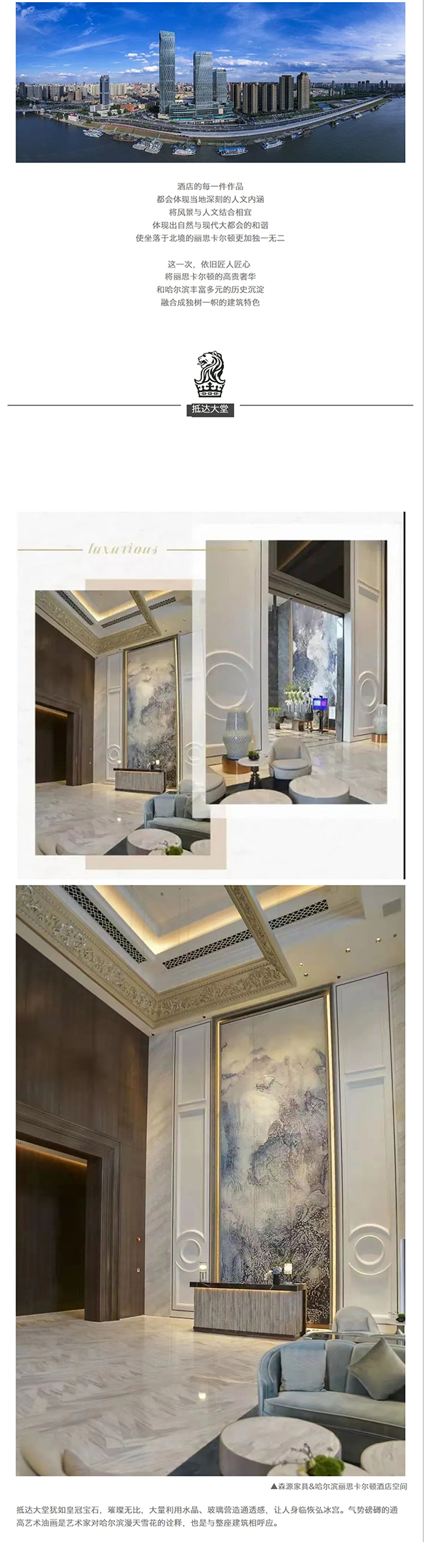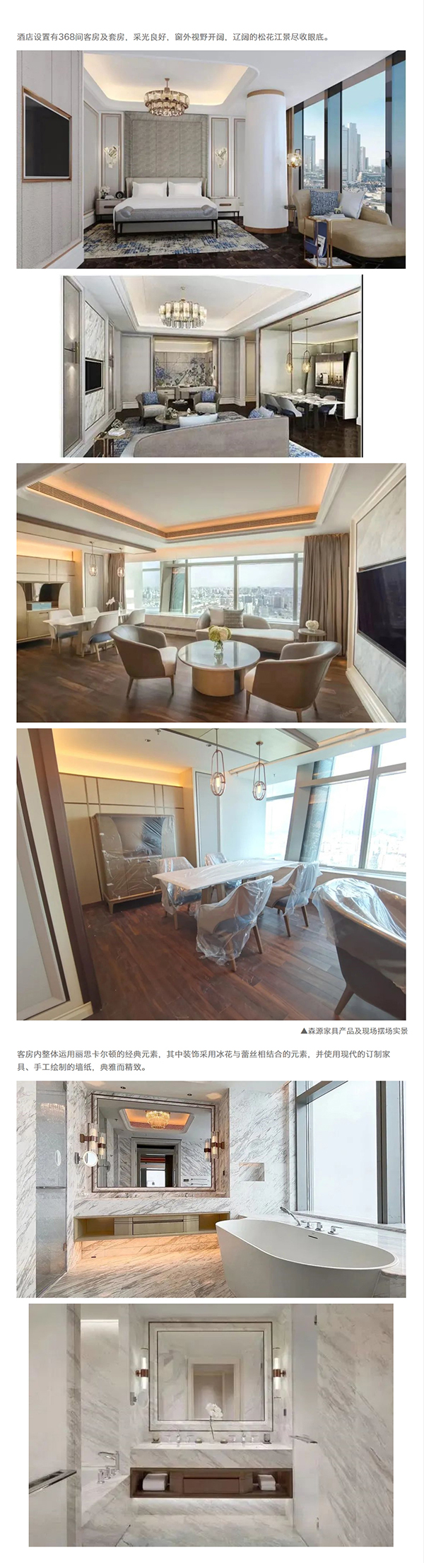 哈爾濱麗思卡爾頓酒店THE RITZ-CARLTON HARBINl 隆重登場(chǎng),其出奇的光芒頓時(shí)亮出了北部**酒店奢圈,十分感謝富力集團(tuán),森源家具重磅打造酒店核心版塊的定制家具。