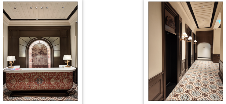 The designers delved deep into the essence of the original building, from the window lattice patterns and tile decorations to the artistic layout of the ceilings and walls. Every detail tells the story of this hotel’s glorious past. Stepping through the hotel’s entrance, the rustic lobby floor tiles and the yellowed historical photos on the walls transport guests through time, evoking the charm of old Macau.