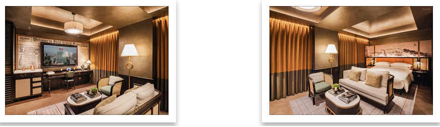 酒店共11層,設(shè)有114間客房,五至十層以復(fù)古為主題,每兩層代表一個歷史年代,打造出三大主題與六種房型,進(jìn)一步強(qiáng)化了酒店的獨(dú)特性與歷史魅力。