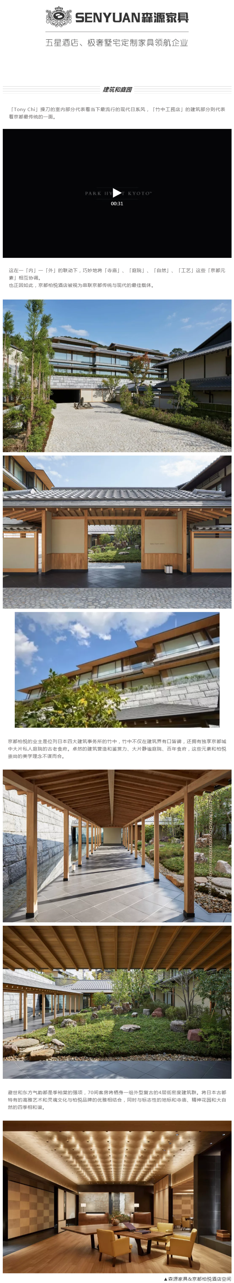 2019年10月30號(hào),京都柏悅酒店正式開業(yè),大師季裕棠的日系風(fēng)新作。 京都柏悅酒店,與新西蘭奧克蘭柏悅酒店、深圳平安柏悅酒店,成為森源家具2019年三大柏悅酒店項(xiàng)目重磅巨作! 京都酒店素來以高品質(zhì)高段位為目標(biāo),作為凱悅集團(tuán)皇冠頂端的、日本第二家柏悅酒店——京都柏悅酒店自然獨(dú)占高席,引領(lǐng)當(dāng)下最流行的現(xiàn)代日系風(fēng)。 大師季裕棠Tony Chi操刀的室內(nèi)部分代表著當(dāng)下最流行的現(xiàn)代日系風(fēng),酒店家具作為重要版塊,由甲方攜手極具實(shí)力的森源家具重磅打造; 森源家具榮幸承接京都柏悅酒店90%以上的活動(dòng)家具, 在日本這個(gè)對(duì)環(huán)保(F4星國際最高標(biāo)準(zhǔn)環(huán)保健康等級(jí))、選材、做工等萬分苛求的國度,森源家具以細(xì)致優(yōu)良的作風(fēng)贏得同樣細(xì)致嚴(yán)苛的業(yè)主認(rèn)可,塑造出京都柏悅酒店的高雅韻味,再一次印證了森源家具為高星級(jí)酒店的有力保障! 在日本這個(gè)獨(dú)特的高標(biāo)準(zhǔn)市場(chǎng), 森源家具2019年已完成: 京都柏悅酒店、京都四季酒店、大阪康萊德酒店、京都美居酒店、東京大倉酒店、日本沖繩庫尼拉酒店、Oakwood麻布臺(tái)以及正在進(jìn)行的1個(gè)高級(jí)酒店, 這是森源家具全球影響力的彰顯,更是中國定制家具品質(zhì)蜚聲國際的重要里程碑。 2019年,森源家具集中交付了京都柏悅酒店、新西蘭奧克蘭柏悅酒店、深圳平安柏悅酒店三大柏悅酒店, 同時(shí)還擁有廣州柏悅酒店、三亞太陽灣柏悅酒店項(xiàng)目服務(wù)案例,為凱悅集團(tuán)柏悅品牌在各地的綻放添加異彩。 相信,此后,森源家具也會(huì)成為更多柏悅酒店及其他高星級(jí)酒店的最佳首選! 京都秋天的楓葉紅了, 浪漫的您, 是否前往京都欣賞美景, 入住體驗(yàn)京都柏悅酒店&森源家具日系空間? 森源家具, 真誠的感謝京都柏悅酒店及甲方客戶,讓我們有幸入座京都這座美麗的城市,擁有這樣一個(gè)美麗的酒店案例; 我們真誠的感謝每一位客戶,帶我們遨游世界的天際,領(lǐng)略四季的風(fēng)景。 柏悅,我們?cè)倮m(xù); 未來,你我可期!