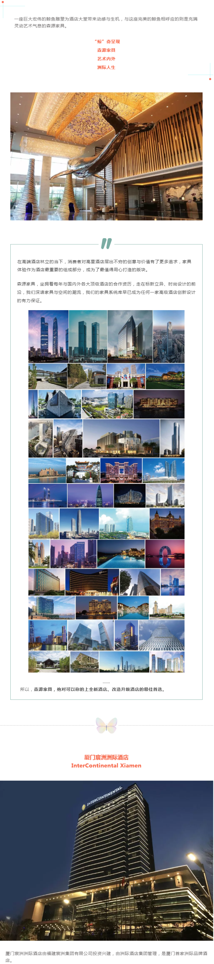 歡迎您前往美麗的廈門,體驗(yàn)美麗的廈門宸洲洲際酒店與森源家具的“鯨”奇空間!